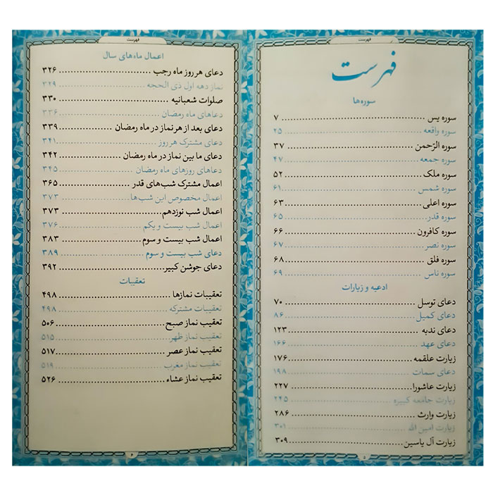 این کتاب شامل گزیدهای از سورههای قرآن، ادعیه و زیارتهای مفاتیح الجنان است. با تنوع رنگی و زیبا گزینهای مناسب برای همراهی شما است که دسترسی به ادعیه و زیارات را در هر زمان فراهم میکند.