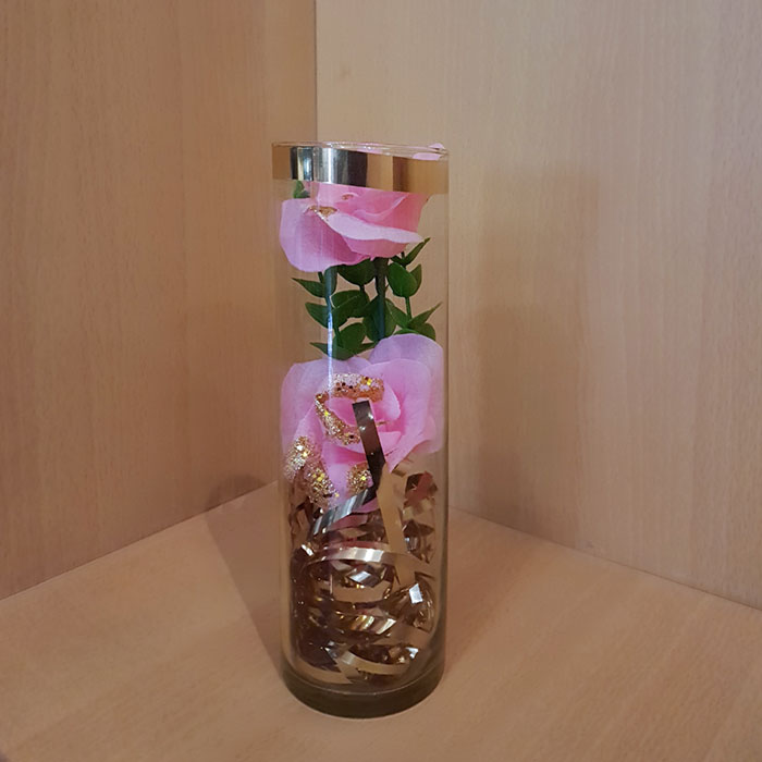 گلدان شیشهای استوانه ای به همراه گل مصنوعی مدل K01