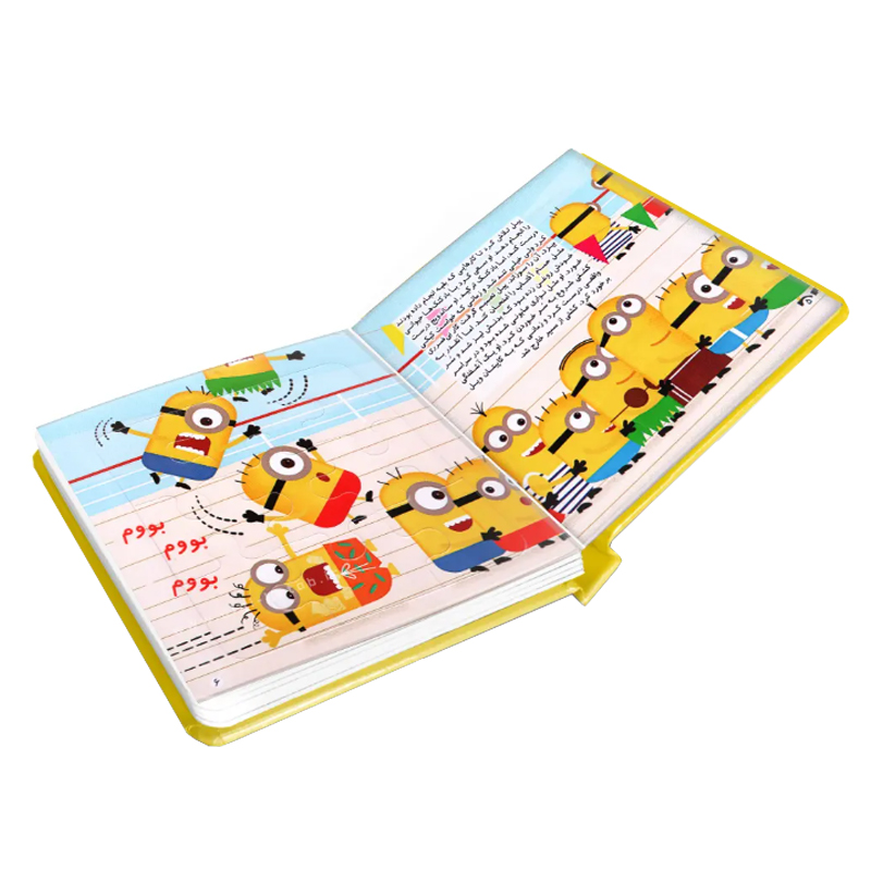 - تصاویر رنگی و جذاب: کتاب دارای تصاویری زنده و رنگارنگ است که داستان مینیونها را به زندگی میآورد. هر صفحه از کتاب با تصاویر پر جنب و جوش و شخصیتهای بامزه مینیونها همراه است.