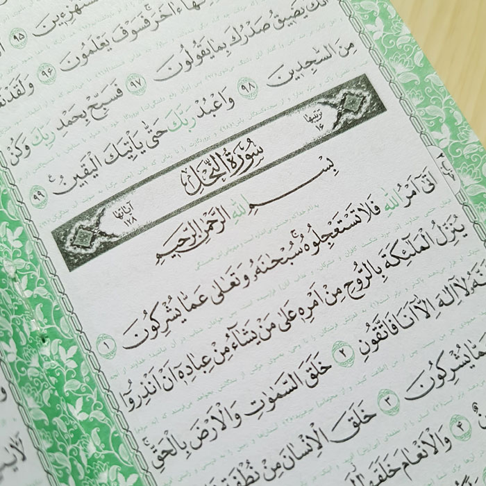 - اندازه و طراحی: اندازه کوچک و پالتویی قرآن، حملونقل آسان را ممکن میسازد.