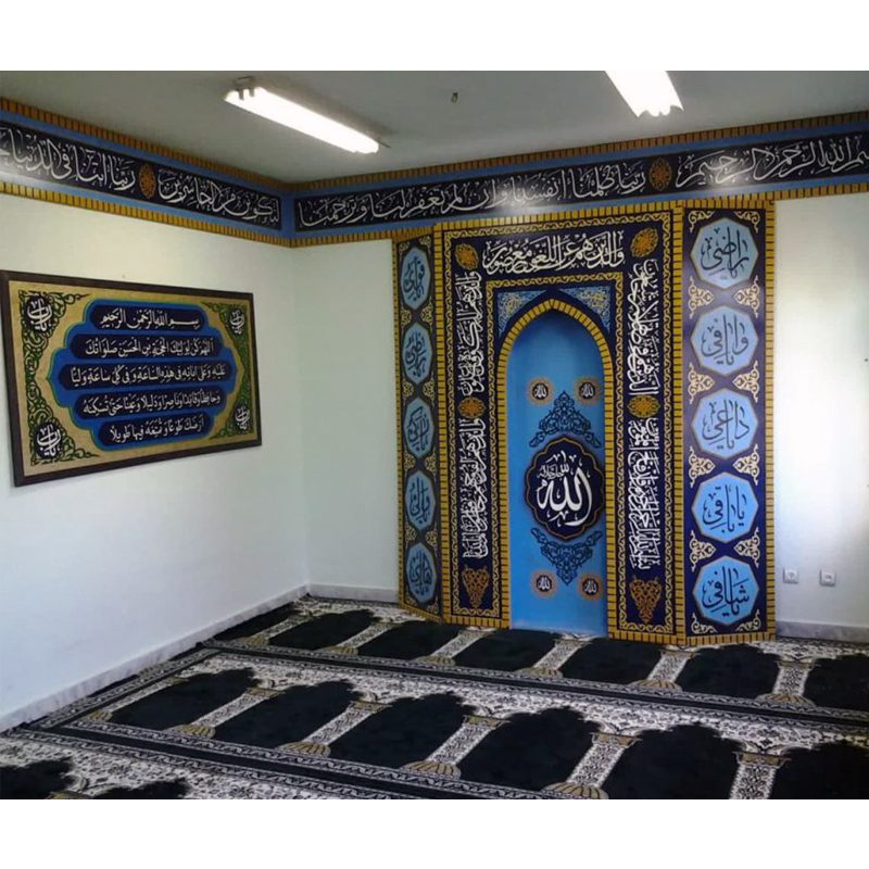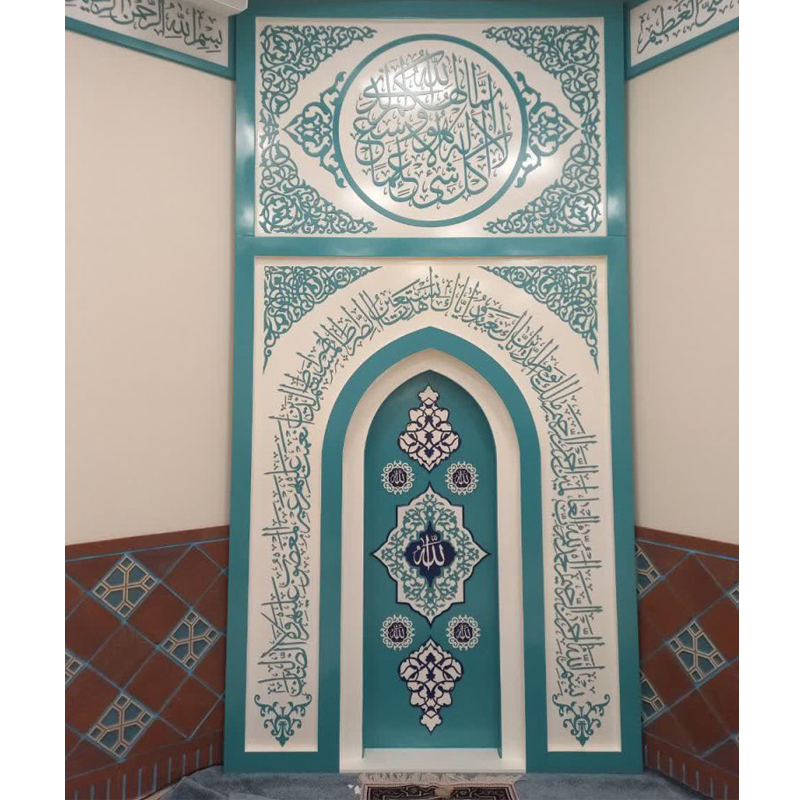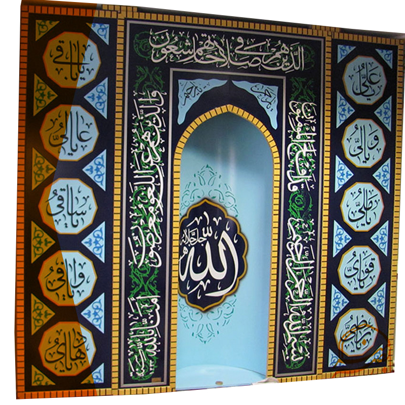 علاوه بر طراحی محراب، امکان فضاسازی کل نمازخانه با کتبیه ها و سازه های ثابت نمایشگاهی هم وجود دارد.