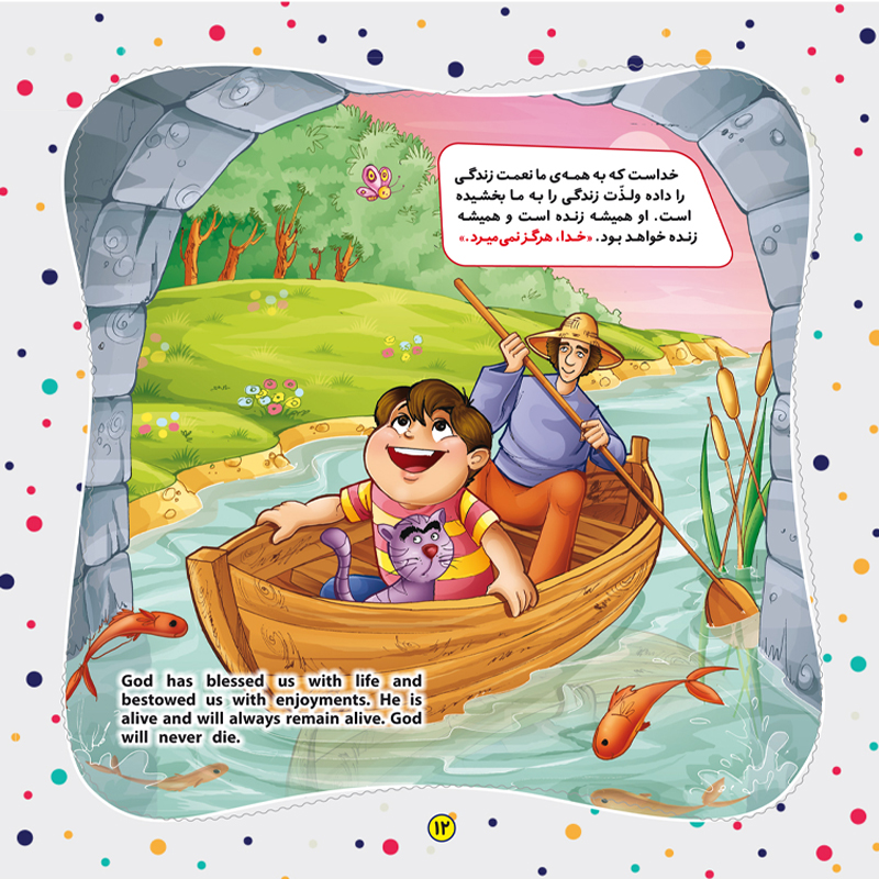 کتاب «خدا هرگز نمیمیرد» از مجموعهی «به من بگو خدا کیست؟»، با هدف آشنایی کودکان با مفاهیم دینی و خداشناسی نوشته شده است. این کتاب به زبان ساده به سوالاتی مانند «آیا خدا میمیرد؟» پاسخ میدهد و با تصاویر جذاب و اپلیکیشن واقعیت افزوده، مفاهیم را بهطور تعاملی به کودکان میآموزد. مجموعه به هشت زبان ترجمه شده و در سراسر جهان محبوب است.